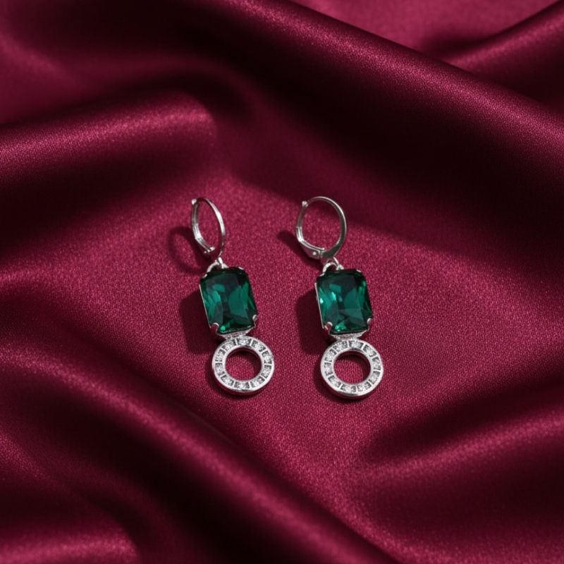 Elevate your style with these elegant silver-toned earrings featuring a vibrant green teardrop-shaped stone set within a polished circular hoop. The design is finished with a delicate crystal-accented top for a sophisticated, modern look.